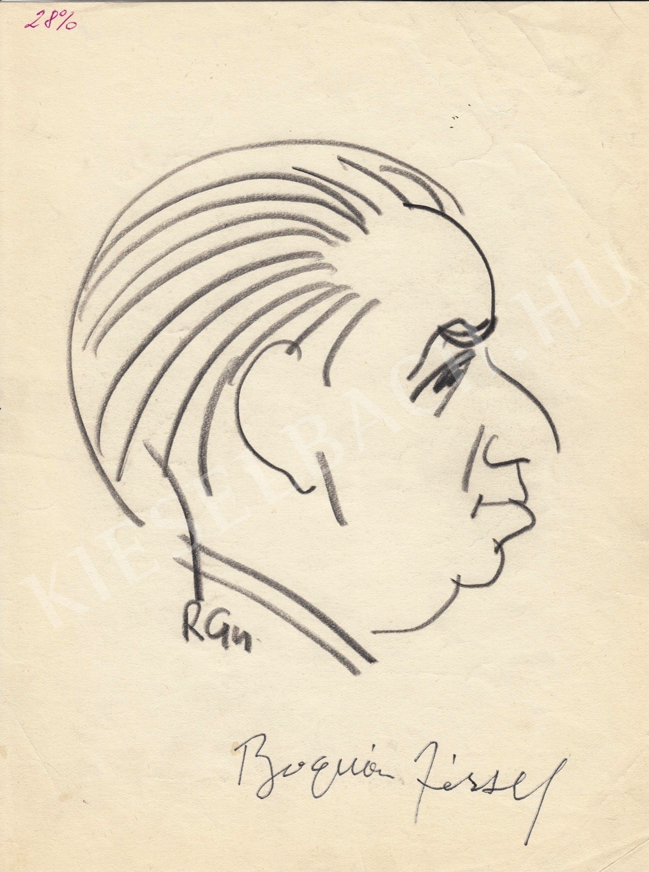 j.b.l.: RGY monogram, az ábrázolt személy autográf dedikálásával
