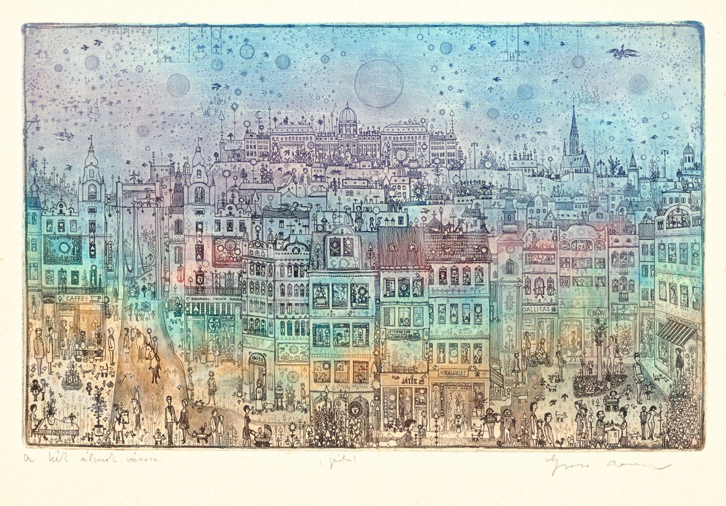 Jelezve balra lent: A kék álmok városa, Jelezve középen lent: próba, Jelezve jobbra lent: Gross Arnold
