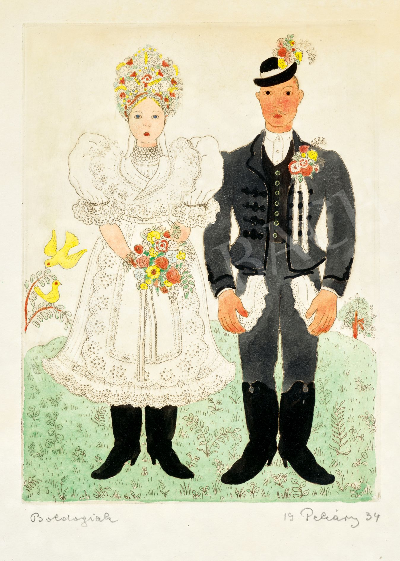 Színezett rézkarc, papír