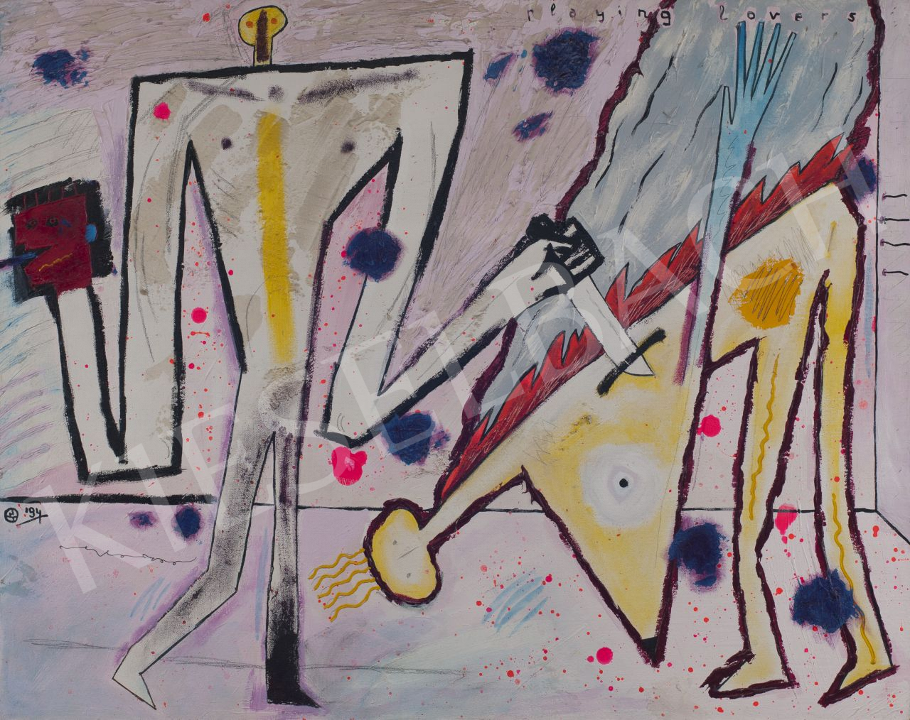 Signed upper right: Playing lovers, Signed middle left: the artist's monogram 94